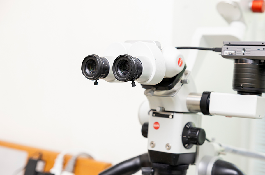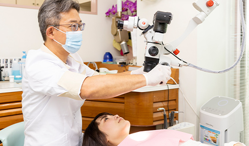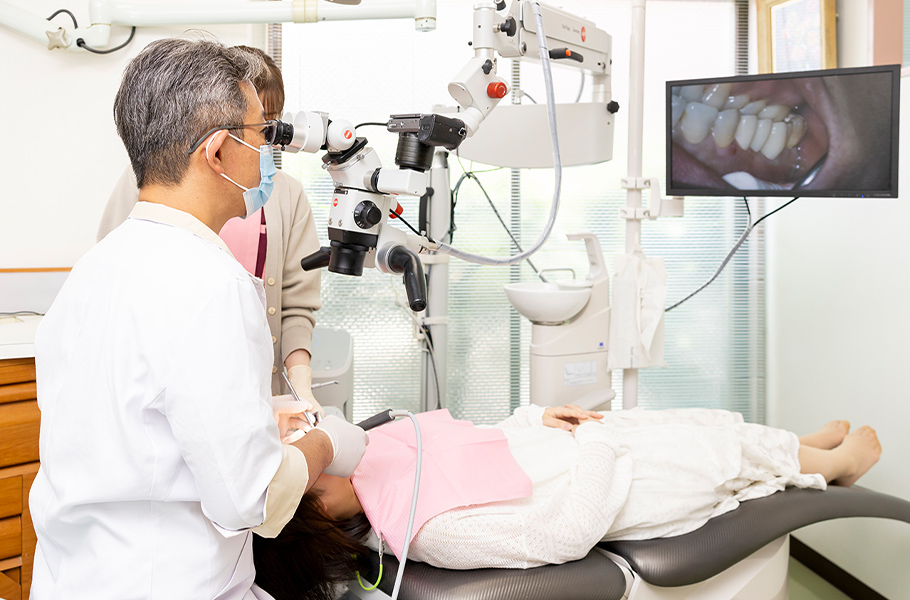 治療の前には、マイクロスコープを使用してお口の検査を行います。